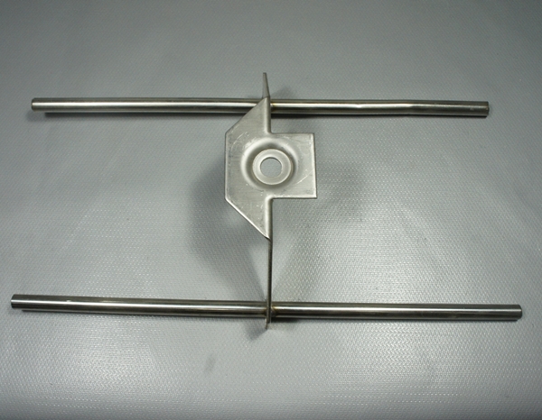 該結(jié)構(gòu)形式的錨固件由一件形似“蝶”狀的支架,焊接兩條耐熱剛管組成,在鋼管的兩側(cè)各穿插一件壓縮量均衡的陶瓷纖維折疊毯。該結(jié)構(gòu)形式的硅酸鋁纖維模塊,不僅錨固結(jié)構(gòu)牢固,而且能保證模塊安裝完畢,拆除保護(hù)片之后,壓縮過(guò)的折疊毯能產(chǎn)生充分回彈,膨脹完全不受錨固結(jié)構(gòu)的限制,保證爐襯的無(wú)縫要求,同時(shí)因?yàn)樘绽w模塊與背襯層間只有一層鋼板的間縫,能實(shí)現(xiàn)與背襯層間的緊密貼合,保證爐襯厚度均勻、平整美觀。