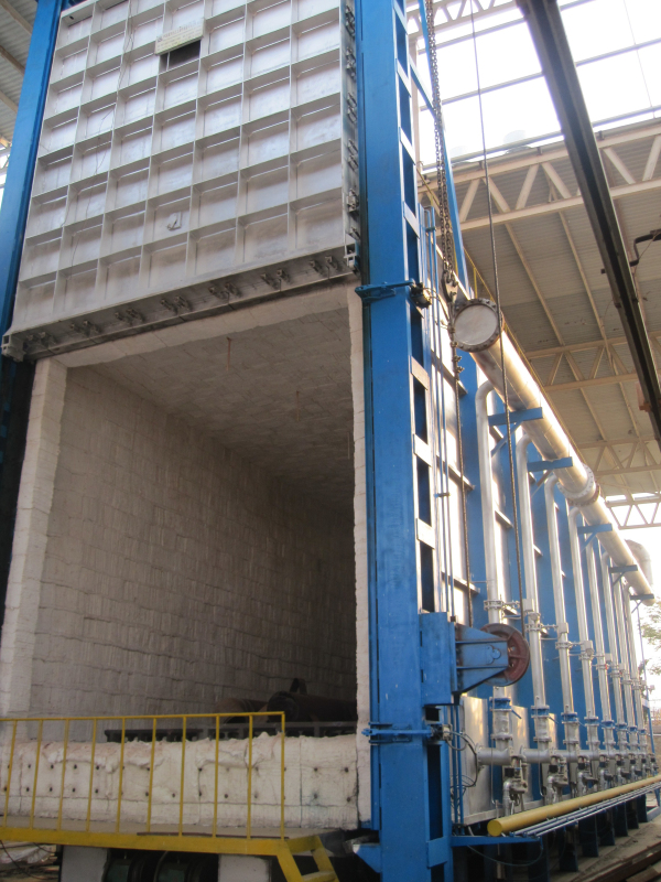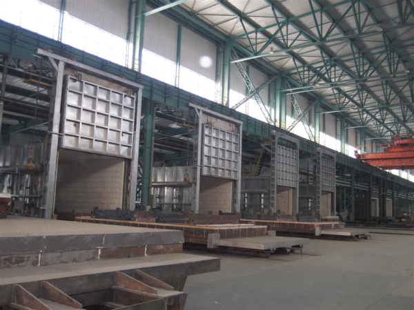 臺車式爐屬于間隙式變溫爐,主要用于鋼錠鍛前加熱或工件熱處理,因此其爐型可分為臺車式加熱爐和臺車式熱處理爐。爐子由爐膛、可移動臺車及爐門三部分組成。