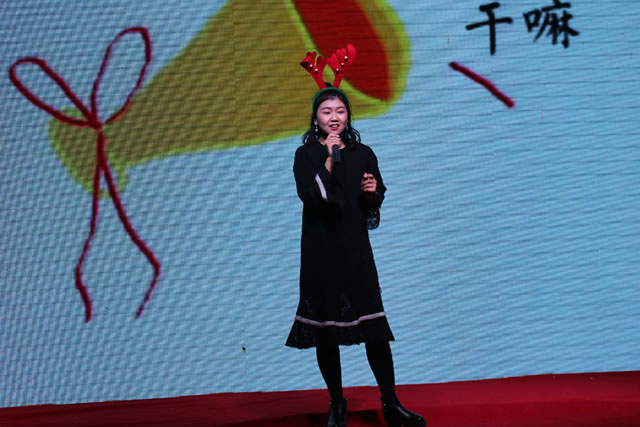 接下來一首歡快的歌曲拉開此次晚會(huì)的序幕,請(qǐng)欣賞王家一帶來的歌曲《咖喱咖喱》。